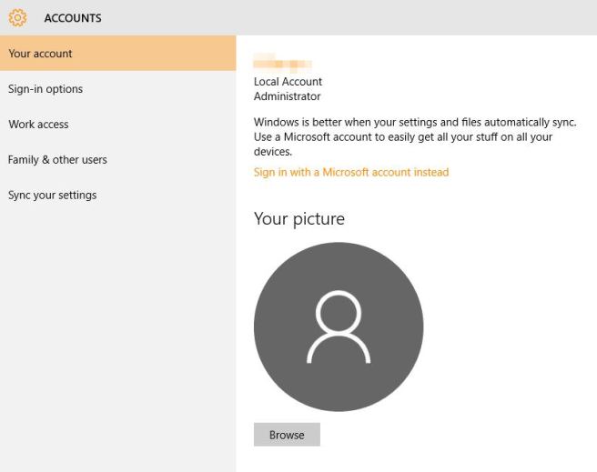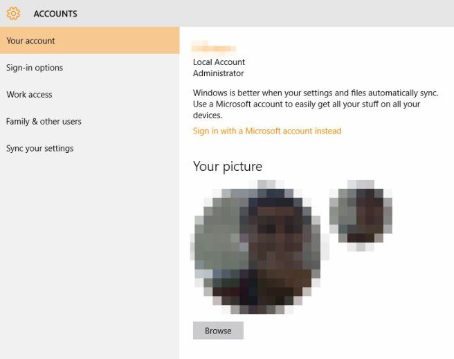 Back to “Your account” setting, click on “Browse” and type in “C:ProgramDataMicrosoftUser Account Picturesuser.png” following with “Choose picture” button or enter.