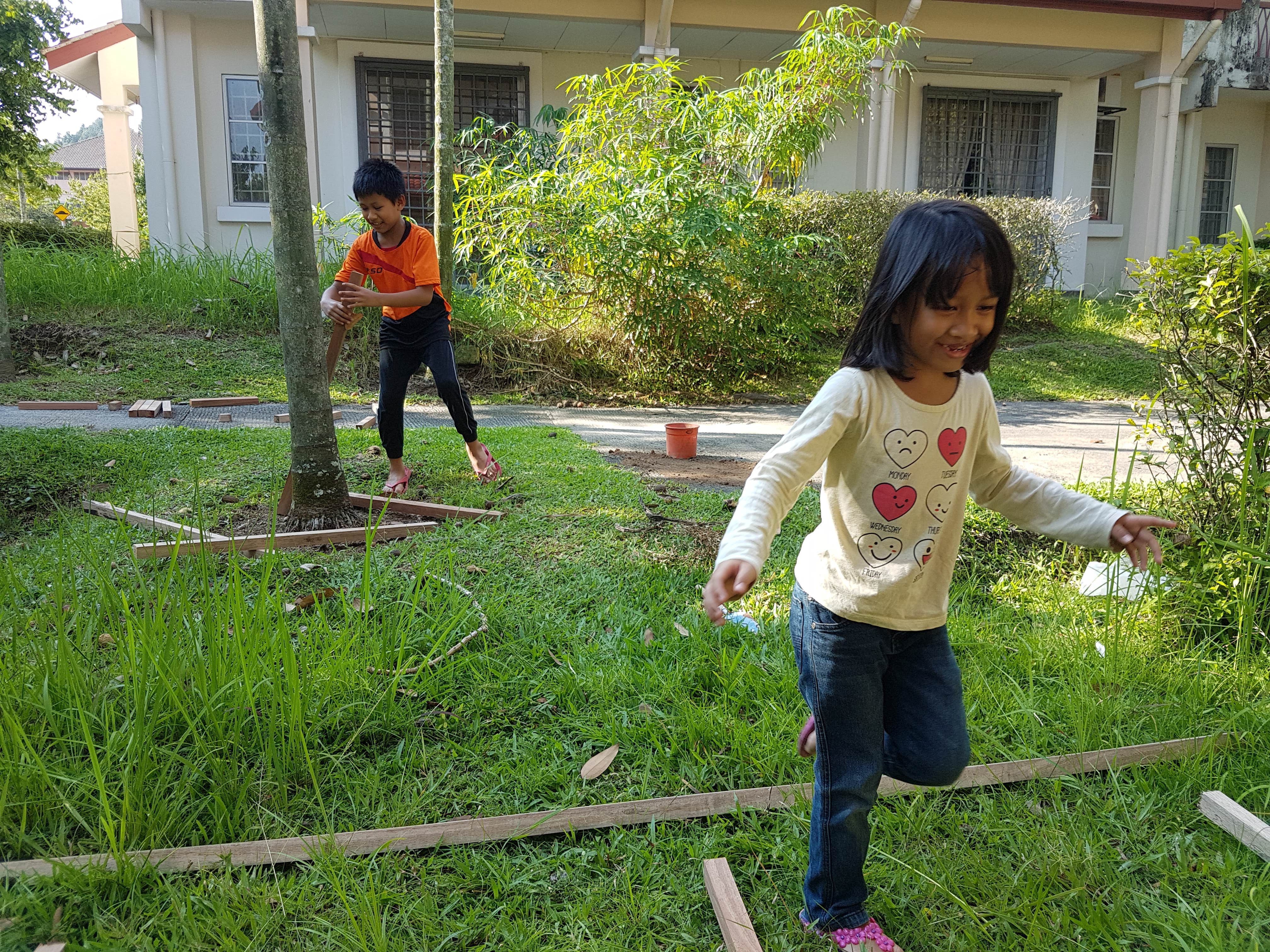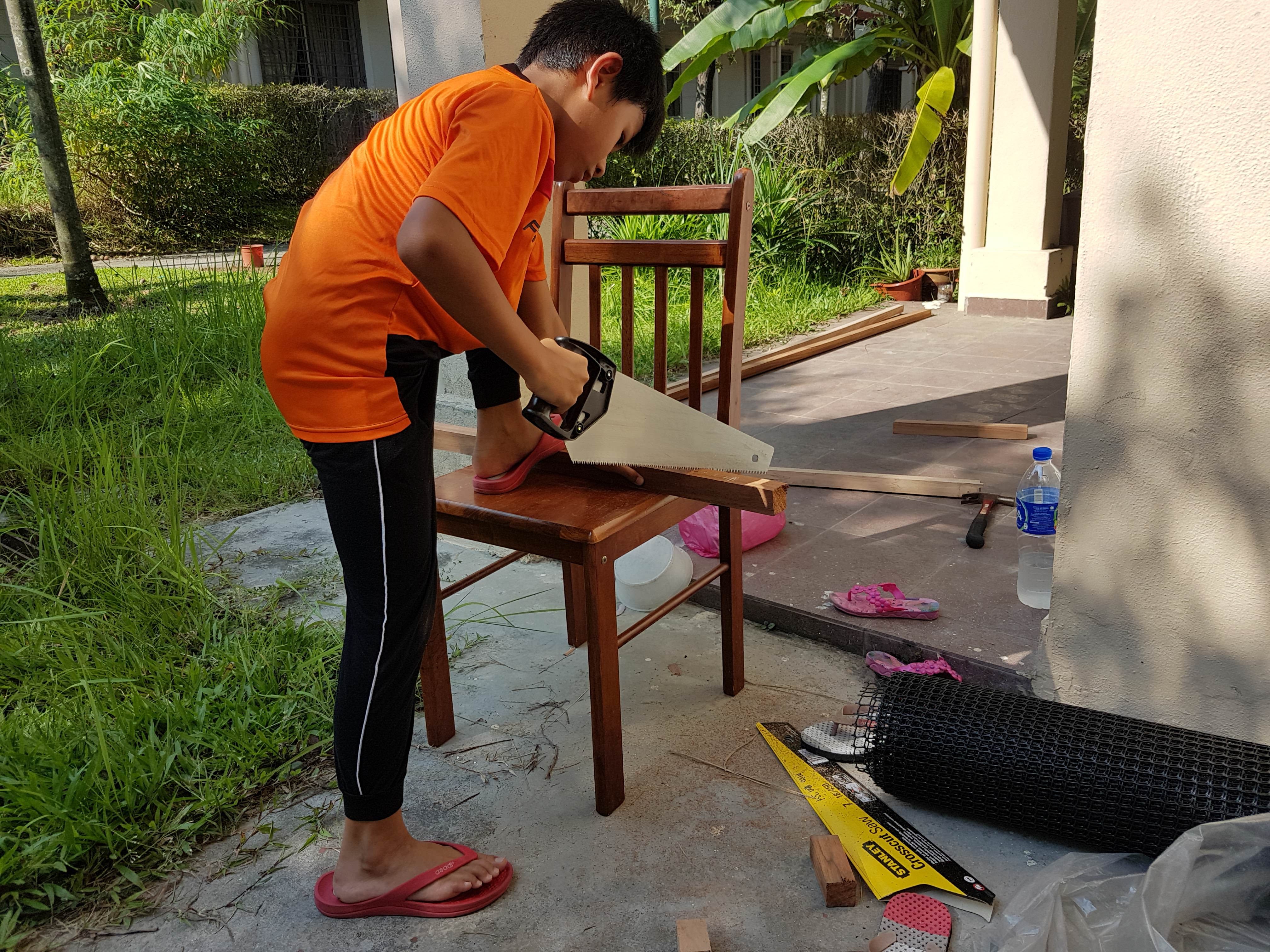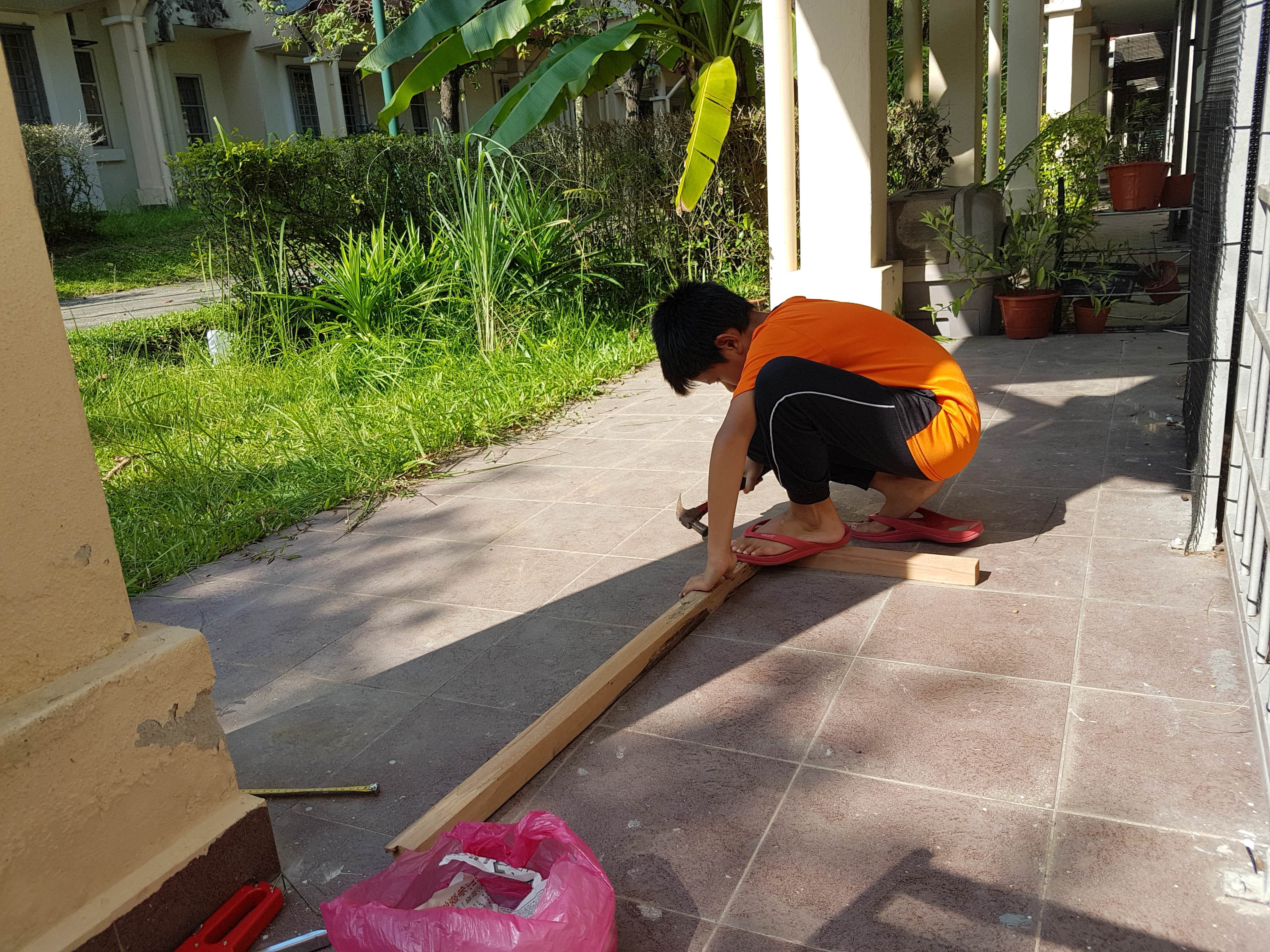 Lepas tu, kena ada pembantu kalau nak buat kerja-kerja kayu macam ni. Nasib baik la ada Danish dan Darwisyah yang sudi membantu (dan menyibuk hehehe).
